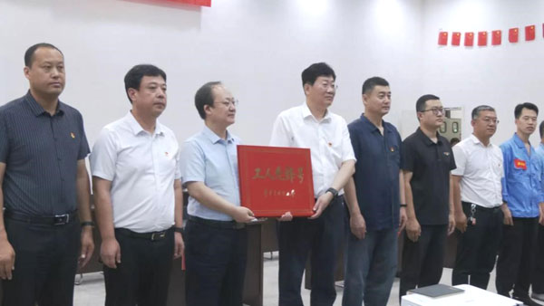 授牌儀式上,趙洪濤宣讀了《中華全國總工會關(guān)于表彰2022年全國五一勞動獎和全國工人先鋒號的決定》。徐澤林為榮獲“全國工人先鋒號”的滄州四星玻璃股份有限公司制瓶二車間頒發(fā)了表彰授牌,并合影留念。